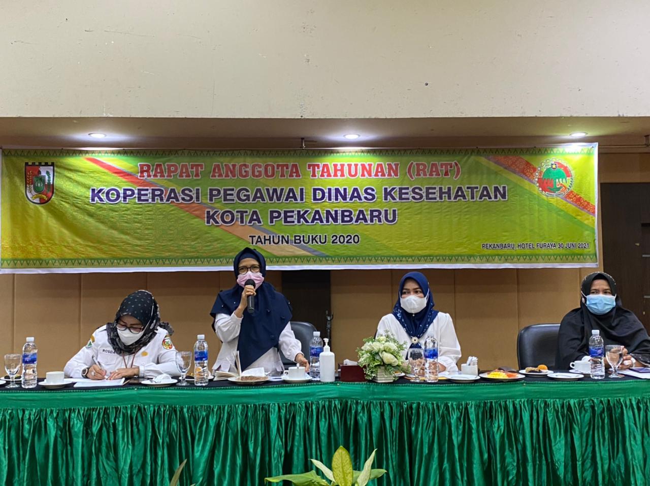 Nailis didampingi Pejabat Fungsional Ir Suhaimi beserta Tenaga Pendamping. Rapat Anggota Tahunan juga dihadiri Kepala Bidang Layanan Kesehatan Dinkes Kota Pekanbaru Gustiyanti SKm MKes mewakili Kepala Dinas Kesehatan Kota Pekanbaru beserta seluruh jajaran kepengurusan, Pengawas, serta Anggota Koperasi.
