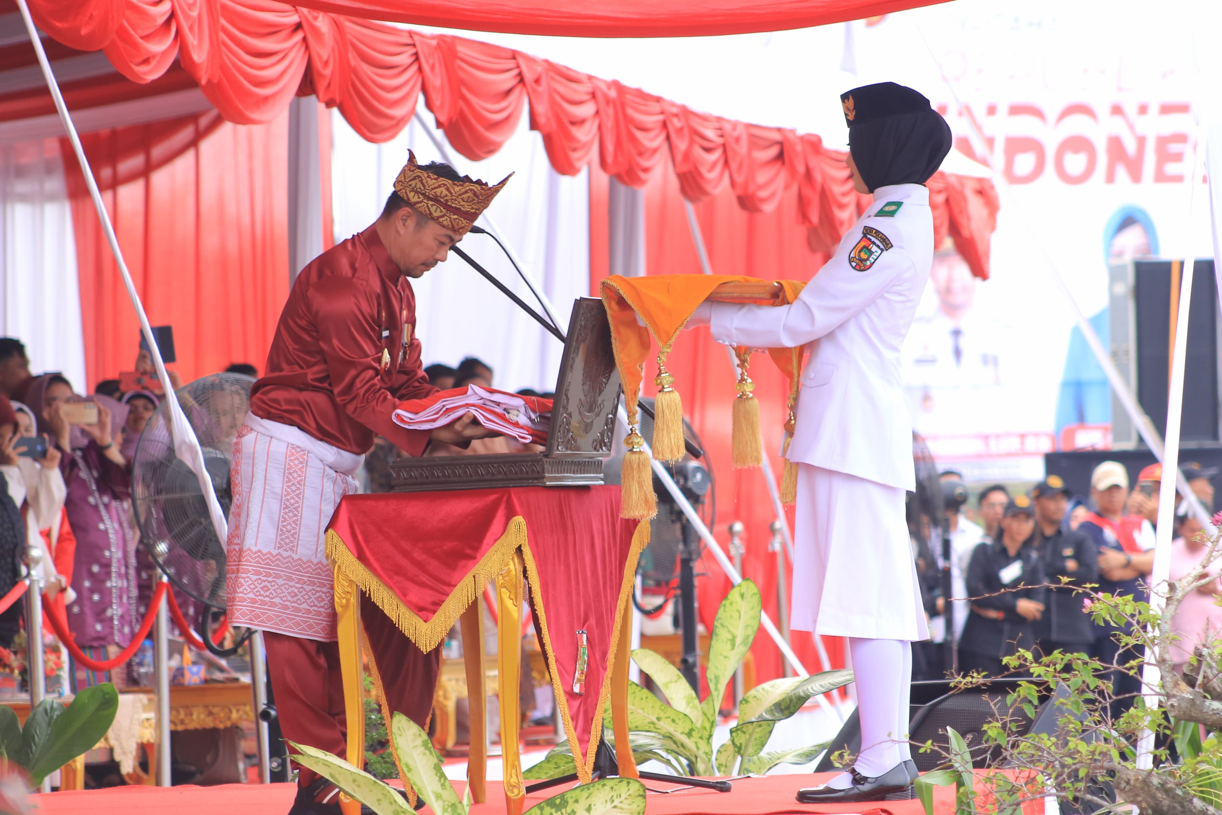"Alhamdulillah upacara penurunan duplikat bendera pusaka merah putih pada HUT RI Ke-79 berjalan lancar, dan khidmat," ujar Risnandar Mahiwa.