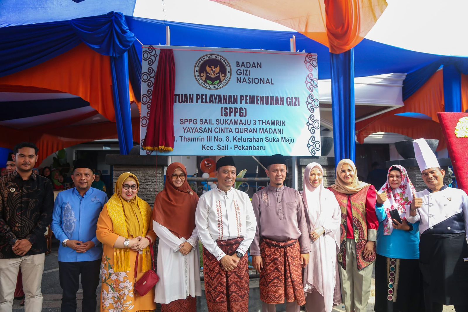 Terbaru, Wali Kota Pekanbaru Agung Nugroho bersama Wakil Wali Kota Markarius Anwar meresmikan satu dapur umum MBG yang dikelola Yayasan Cinta Quran Madani di Jalan Thamrin III, Kelurahan Sukamaju, Kecamatan Sail, Kamis (31/10/2025).