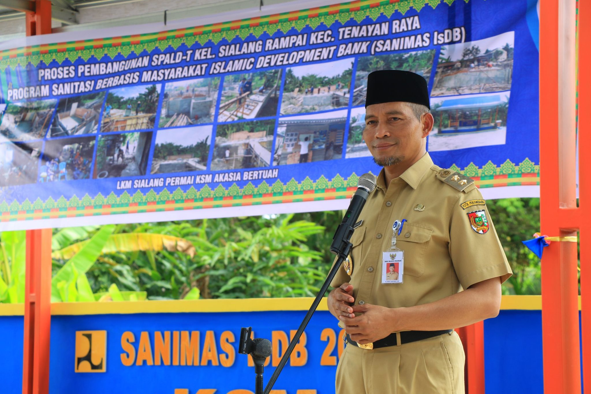 PEKANBARU -- Wakil Walikota Pekanbaru, H. Ayat Cahyadi, S. Si meresmikan Sarana Sistem Pengolahan Air Limbah Terpusat (SPAL-T) yang merupakan Program Sanitasi Berbasis Masyarakat - Islamic Development Bank (Sanimas-IsDB) Tahun Anggran 2019 di Jalan Akasia, Kelurahan Sialang Rampai Kecamatan Tenayan Raya, Kota Pekanbaru, Senin (16/12/2019)